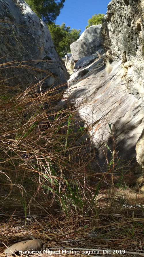 , o barranquete, formado por dos paredes rocosas que conduncen en desagüe las aguas de lluvia.