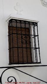 Conserva una ventana saliente enrejada con tejadillo coronado por pináculo lobulado.