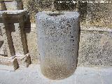 - Junto a la portada, tiene un trozo de columna de época romana que tiene la siguiente inscripción: LSERGIO·REGIS/ARN·PLAVTO·Q/SALIO·PALATINO/ATRONO.