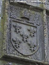 - Sobre la base árabe de esta torre se edificó otra en 1395, según lo pregona una lápida con carácteres góticos adosada a ella, formando un retablillo heráldico con las armas de Castilla y León, de Baeza y del Obispo baezano don Rodrigo Fernández de Narváez, siendo obrero Diego López, junto con Ferrán López cantero y Juan Sánchez Platero.