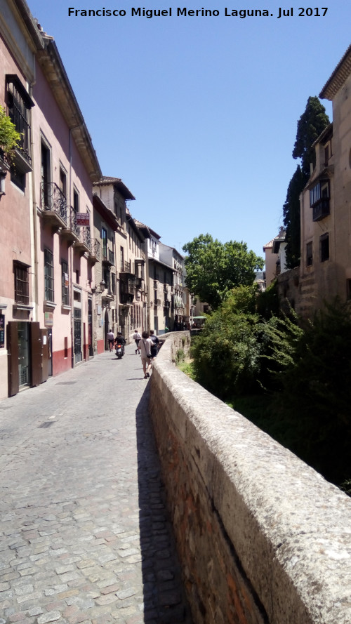 - Es, quizás, la calle más bella de Granada. Discurre entre el barrio del Albaicín y la Alhambra, sobre el curso del Río Darro, y conectando Plaza Nueva con el Paseo de los Tristes.