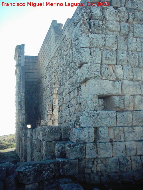 - Sobre la meseta pueden verse esparcidos multitud de restos constructivos de todo tipo, pero lo que puede ser de mayor interés son una serie de monumentos epigráficos, algunos bien conservados, que dan idea de la importancia de la ciudad.