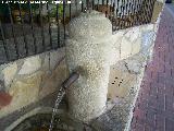 - Fuente de un caño en un fuste de piedra que derrama a un apoya cántaros que a su vez derrama a un pilarillo rectangular a un nivel más bajo.