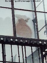 • Sobre la portada un balcón cerrado de hierro fundido que en su interior guarda dos escudos heráldicos.