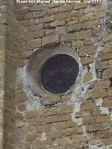 - Los muros son de mampostería encalada y, en el lado norte, presenta una puerta de acceso con un arco de medio punto de sillería con dovelas radiales sobre jambas