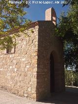 Sobre la fachada tiene una pequeña espadaña de una sola campana.