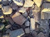 En estado de ruina total, solo quedan los arranques de sus muros de mampostería, restos de su solería de cerámica y un patín.