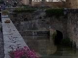 Puente de piedra con ojo de arco rebajado de ladrillo visto.