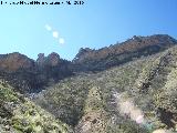 Hay una zona que afloran los estratos rocosos con multitud de pliegues.