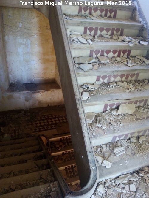 - Estaba rodeada de un gran terreno de labranza en donde, en la parte derecha, se encontraba un jardín compuesto por varios recorridos llenos de plantas y hiedras, el cual albergaba, en su parte central, una fuentecilla baja de cerámica rodeada de poyetes, también decorados en cerámica con motivos geométricos. Todo ello se abría debajo de una gran pérgola con una parra.