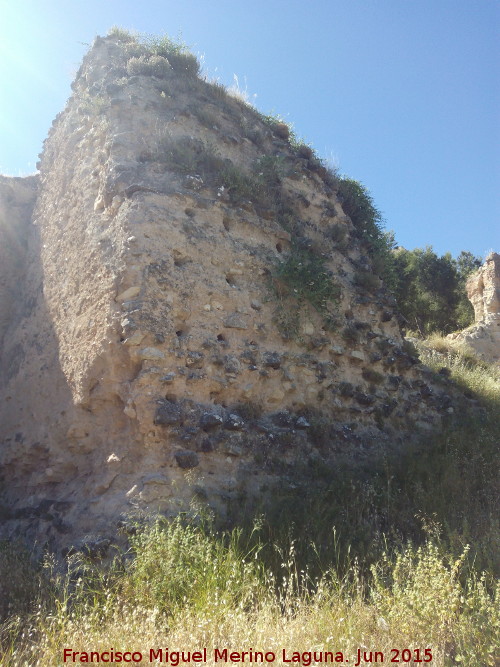 Se trata de un torreón rectangular de calicanto, los lienzos de muralla que pegan a él son de tapial a extramuros.