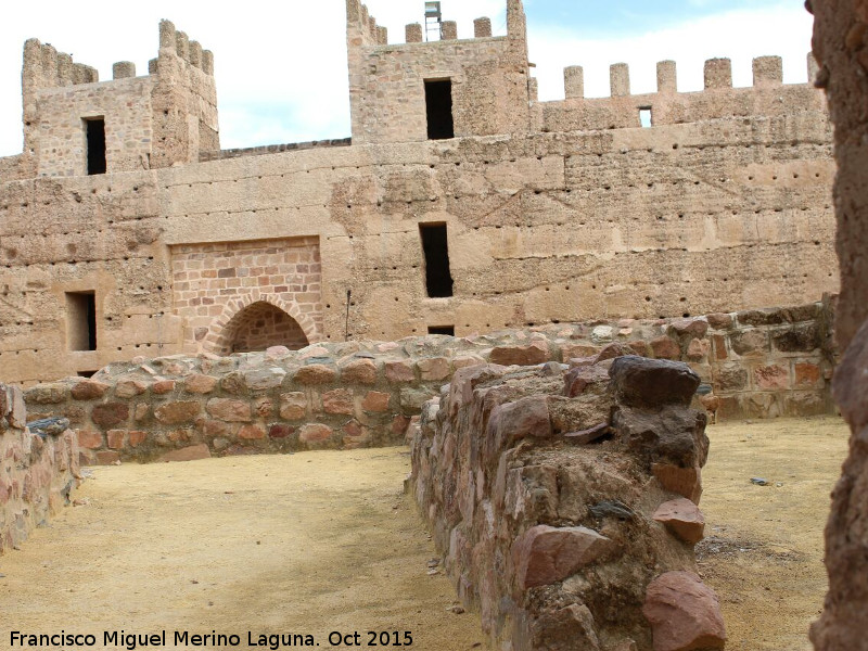 • En el interior del patio de armas hay un alcazarejo con forma de rombo y con un torreón circular en el centro del patio de armas. A este alcazarejo pertenecería la torre del homenaje de época cristiana.