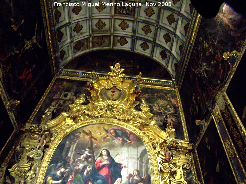 - En ella hay restos de pintadas de los presos que hubo en la Catedral durante la Guerra Civil (Catedral de Jaén. Prisión).