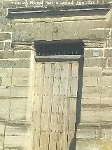 - Portada adintelada entre pilastras planas con capitel decorado con relieves.