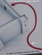 • Para acceder a la sala superior se utiliza una escalera por el interior del muro que desemboca en una estancia de mayor dimensión y cubierta con una bóveda vaída, con cúpula y pechinas de ladrillo. Tiene dos huecos al exterior cubiertos con arcos de medio punto. El acceso a la terraza se realiza por una escalera de ladrillo adosada a uno de los muros y sustentada por arcos apuntados.