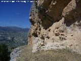 - Protegida por altos escalones de piedra por su parte inferior y por la concavidad de ésta en la superior.