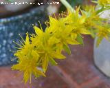 - Hojas carnosas planas, dispuestas en roseta, de color verdemar.