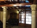 • El interior de la primera planta conserva tres columnas, una de ellas con escudo heráldico.