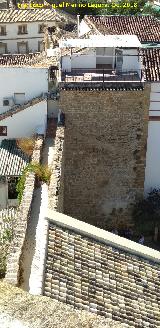 En el lienzo de muralla que le precede hay escudos con la Cruz de Santiago.