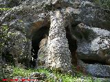 - En una pequeña cueva en la que se ha creado una columna calcárea en su entrada.