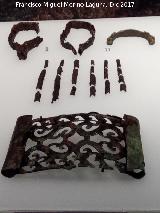 - El Príncipe se hizo sepultar con objetos de sus antepasados y con vestimenta y armas romanas, semejantes a las del jinete de Atalayuelas. El ajuar contenía además, un carro procesonal, una tapadera con su nombre en escritura ibera y un ánfora, que recibía en el interior de la tumba el vino de la libación.