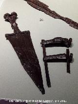 - También se han excavado los restos de un carro funerario de hierro y madera con apliques y adornos de bronce, destacando el hallazgo excepcional de una cabeza de guerrero ibero que está siendo devorada o vomitada por un animal, seguramente un lobo.