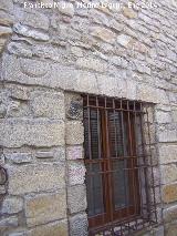 - En una de sus ventanas muestra parte de un dintel de una portada decorado en su clave con una Cruz del Calvario con una calavera a sus pies y en su parte derecha un tondo con las siglas JHS (Jesucristo).